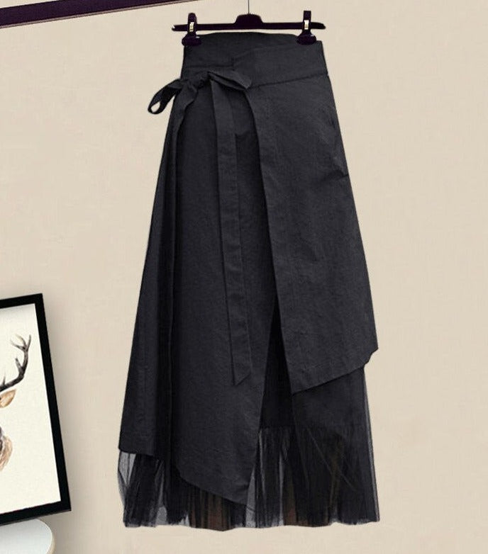 - Skirt decorated by self-tie belt