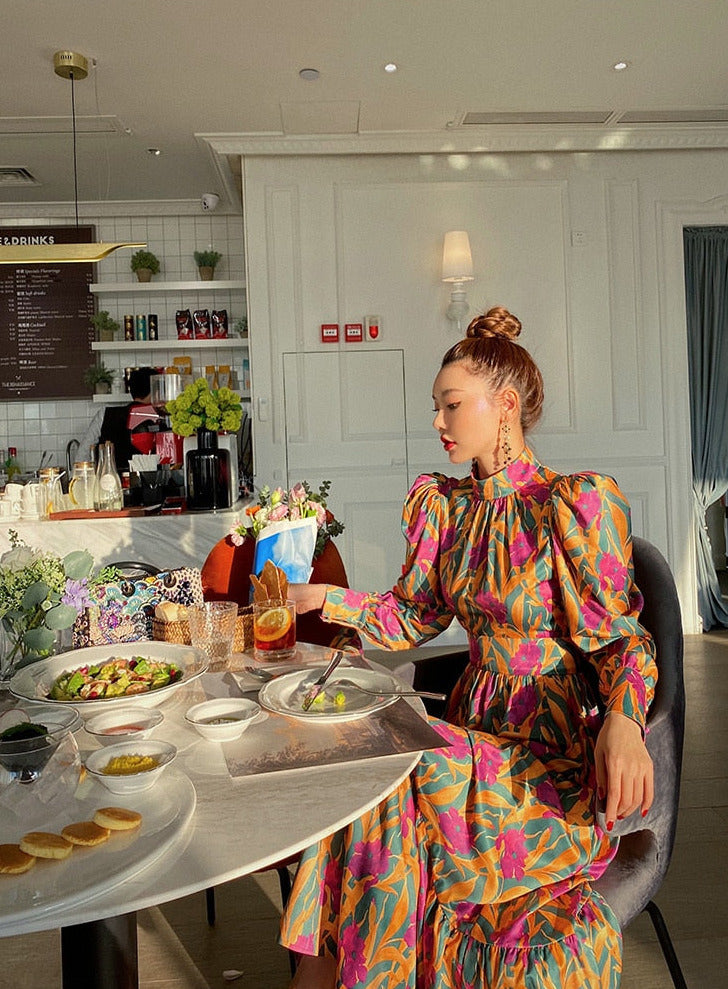 SARAI FLORAL DRESS has prettiest floral print, vintage design, maxi length.